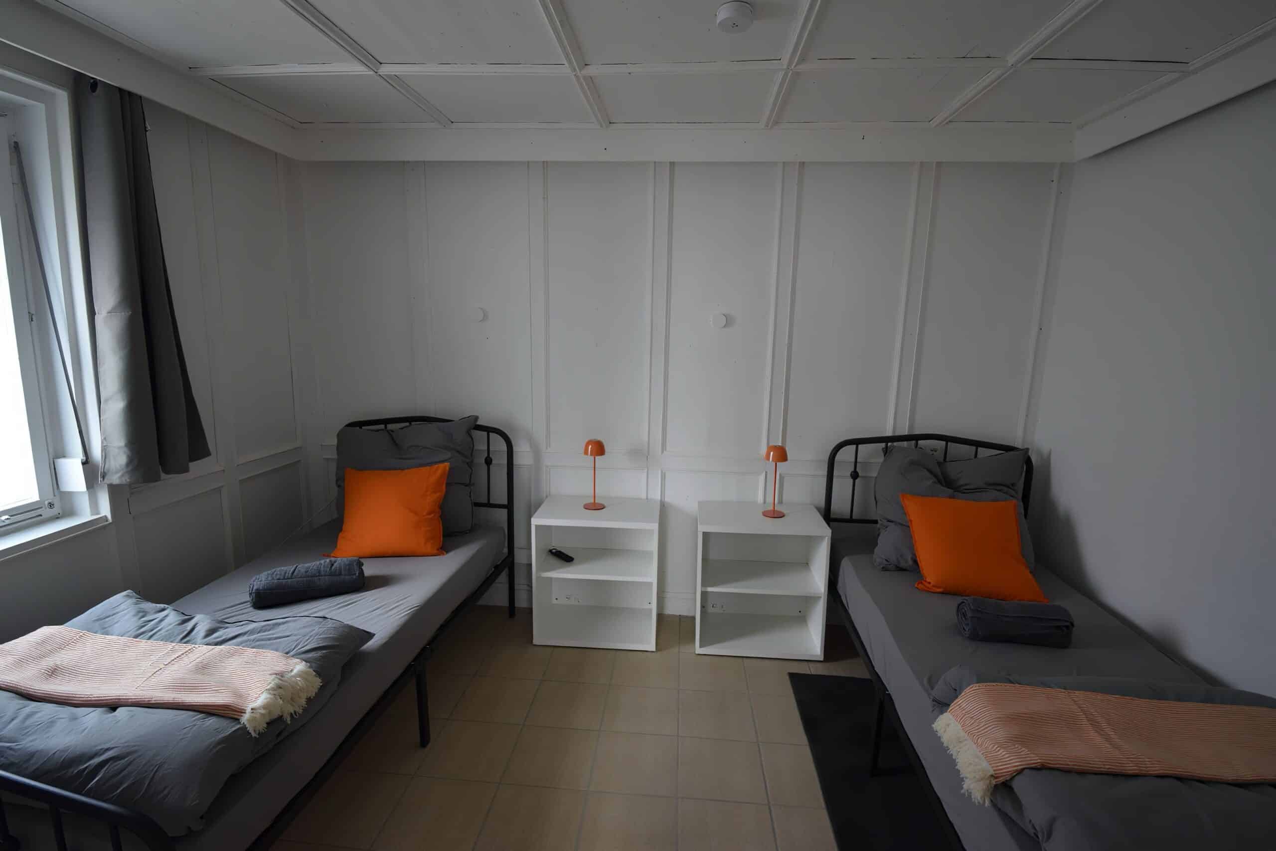 In den Häusern haben wir entweder 6-8 Einzelbetten, wo entsprechend 6-8 Personen unterkommen können. Die Zimmer können mit einem zusätzlichen Einzelbett ausgestattet werden, sodass jeweils zwei Einzelbetten vorhanden sind und jedes Zimmer doppelt belegt werden kann. Somit finden 12-16 Personen Platz. In den Wohnungen haben 1-2 Personen Platz.
