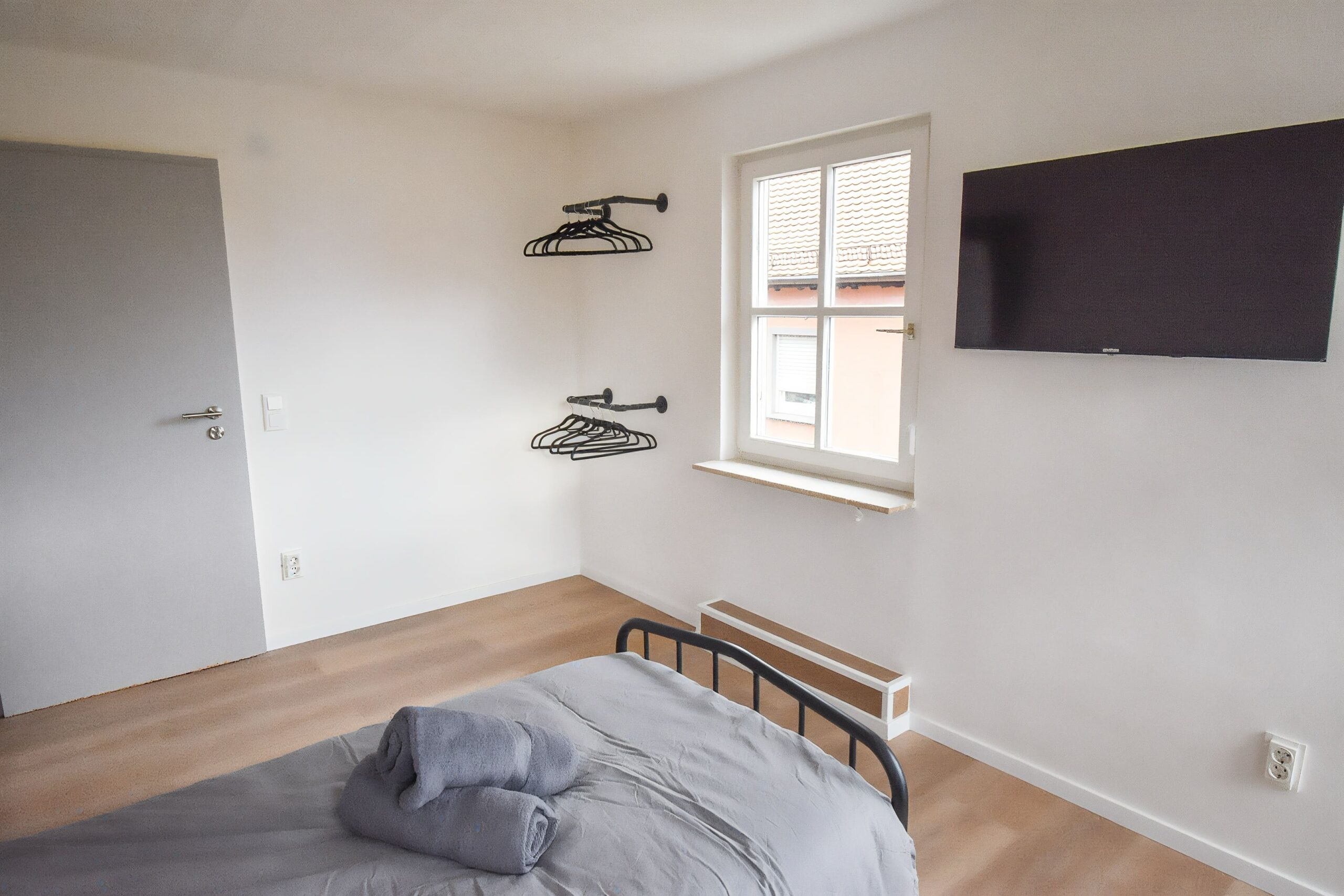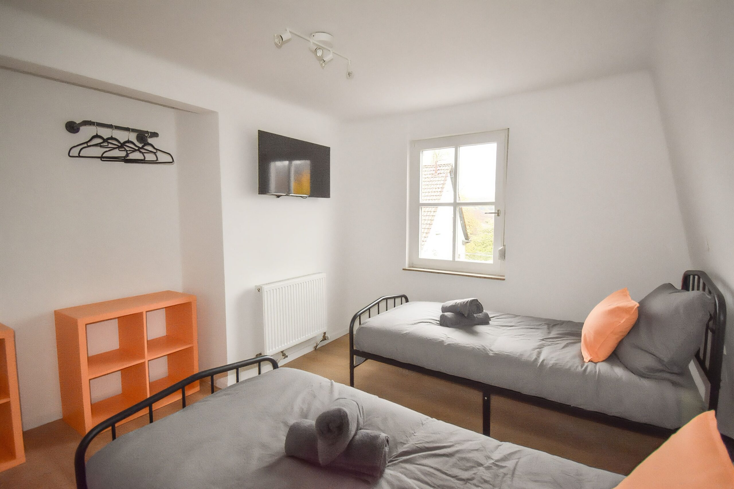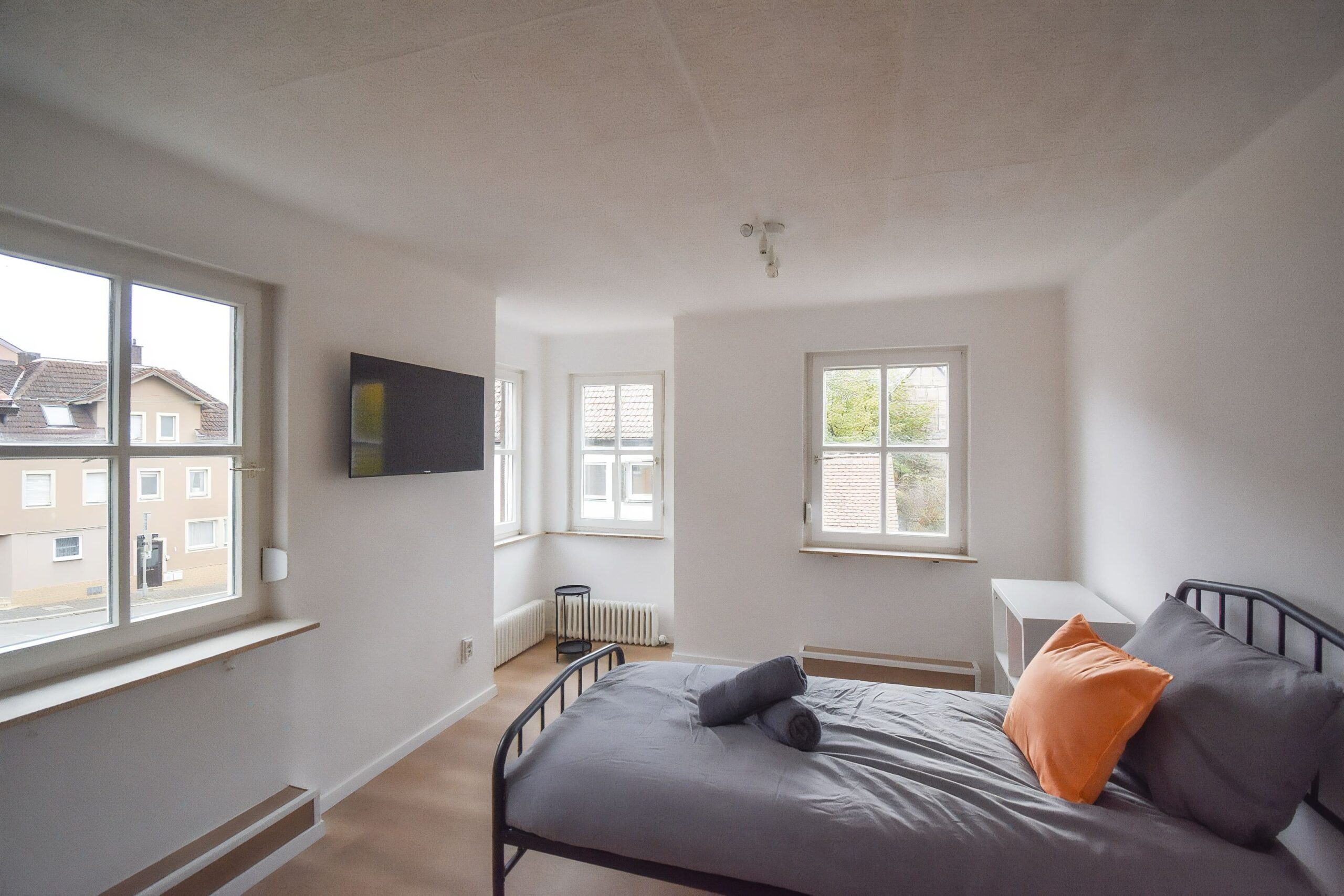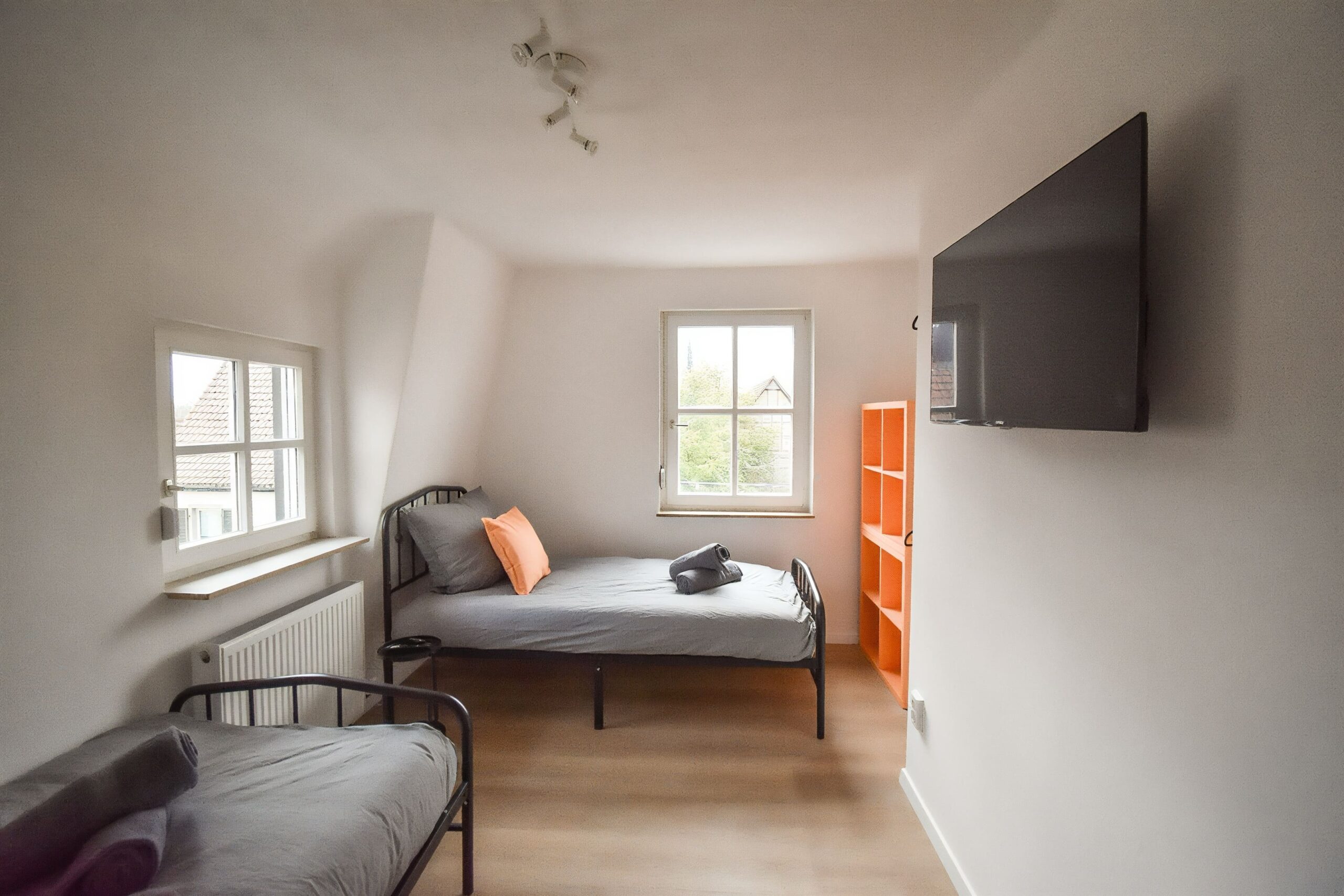 Saniertes, vollmöbliertes Haus mit 8 separaten Schlafzimmern, großem Gemeinschaftsraum, voll ausgestatteter Küche, TV und Garten – ideal für Gruppen bis zu zwölf Personen im Herzen Heilbronns.